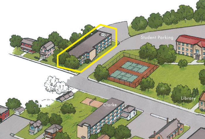 • four-floor male residence hall